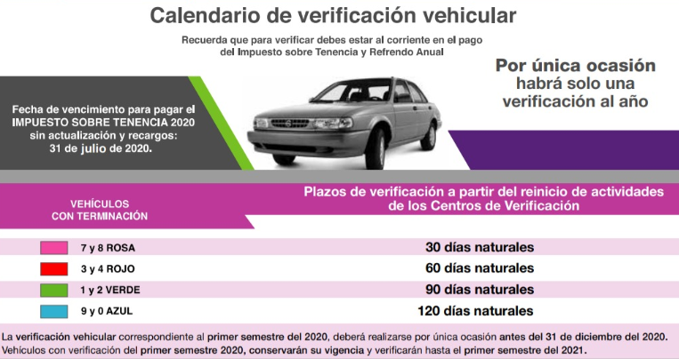 El calendario de verificación se ha modificado debido a la contingencia sanitaria por Covid-19. Ahora sólo se tendrá que realizar este trámite una vez durante todo el año, esto con el objetivo de tomar las medidas para proteger la salud de los que asistan a verificar. Estas son las nuevas fechas de verificación vehicular en la Cuidad de México, Estado de México y Morelos.