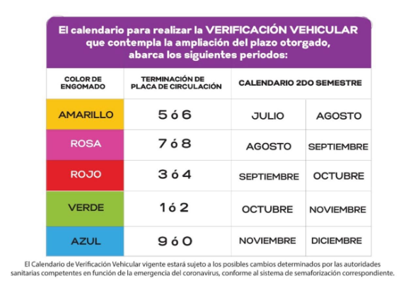 Calendario de verificación de la Ciudad de México